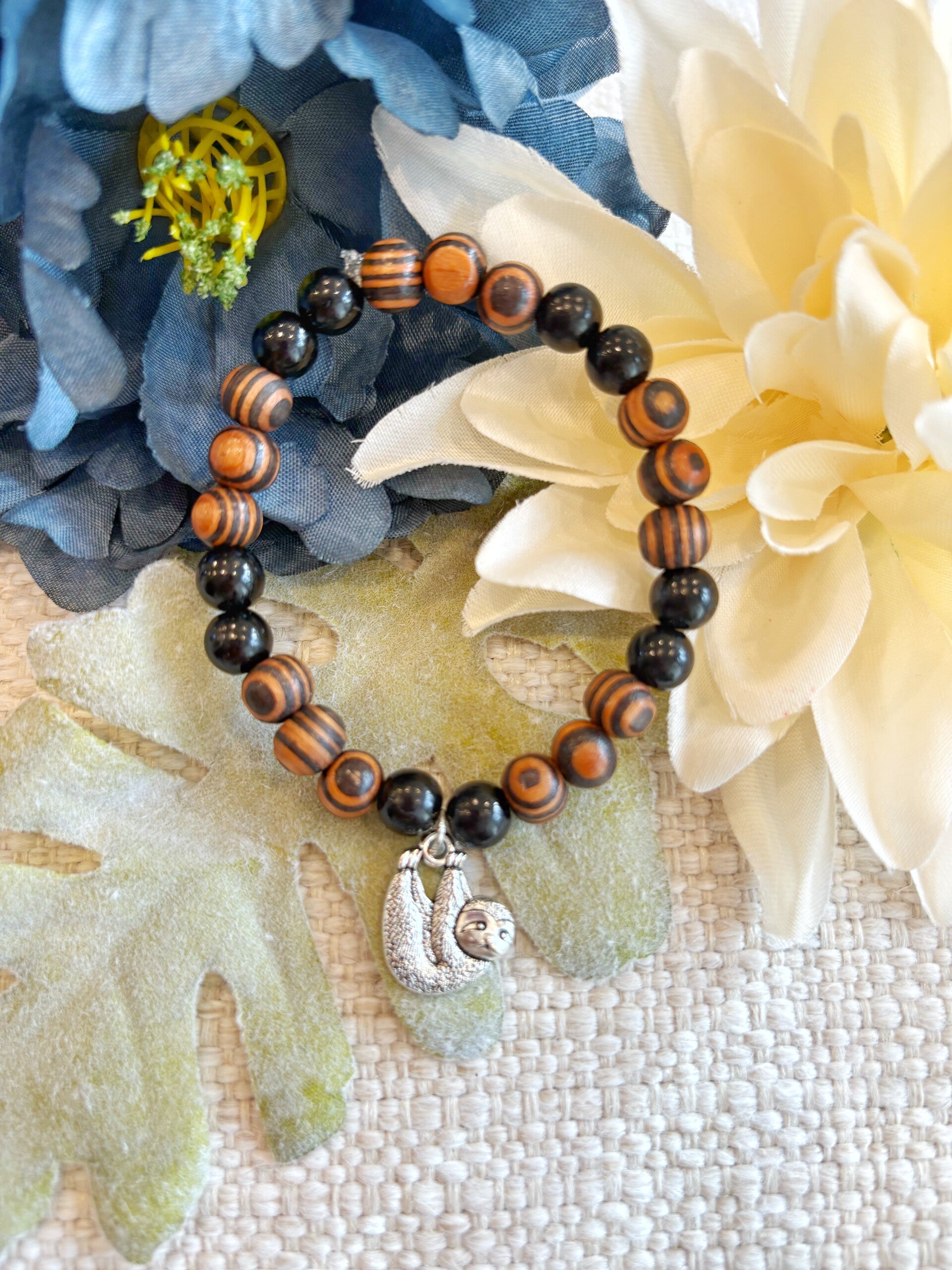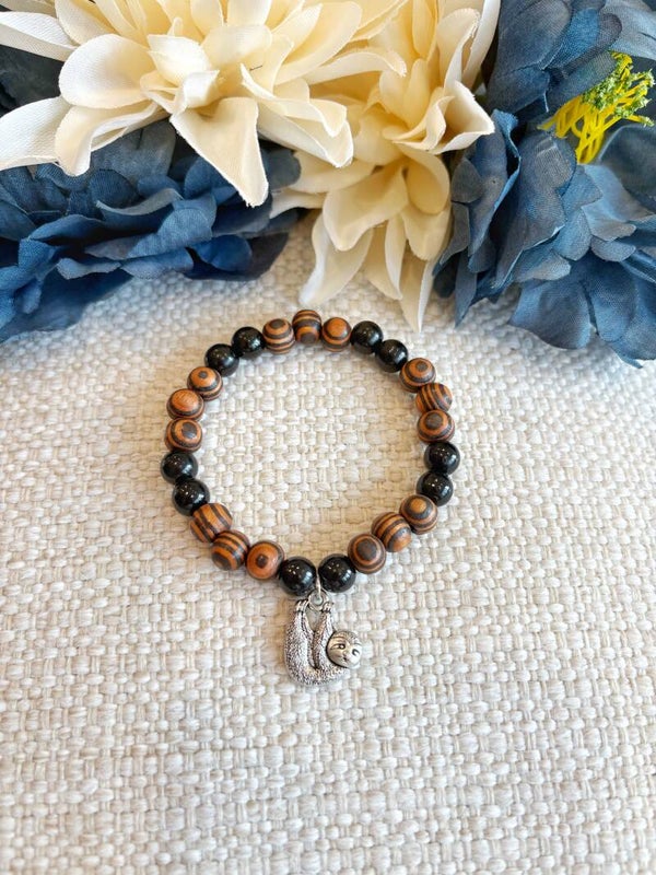 The Sloth N' Steady Bracelet is a cute, 7 inch stretch bracelet inspired by sloths! The purchase of this item will come with a card about a species of sloth. Did you know that the pygmy three-toed sloth is an expert swimmer?